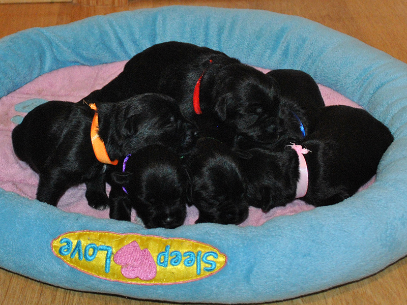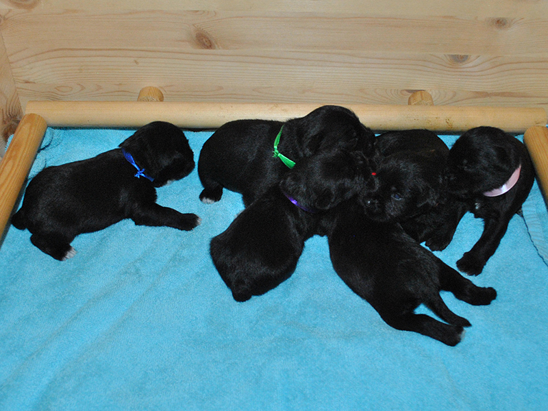 Liva sine valper sammen med Klara sine 5 uker gamle