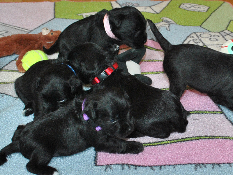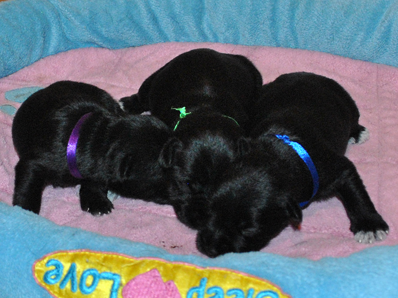 Liva sine valper sammen med Klara sine 4 uker gamle