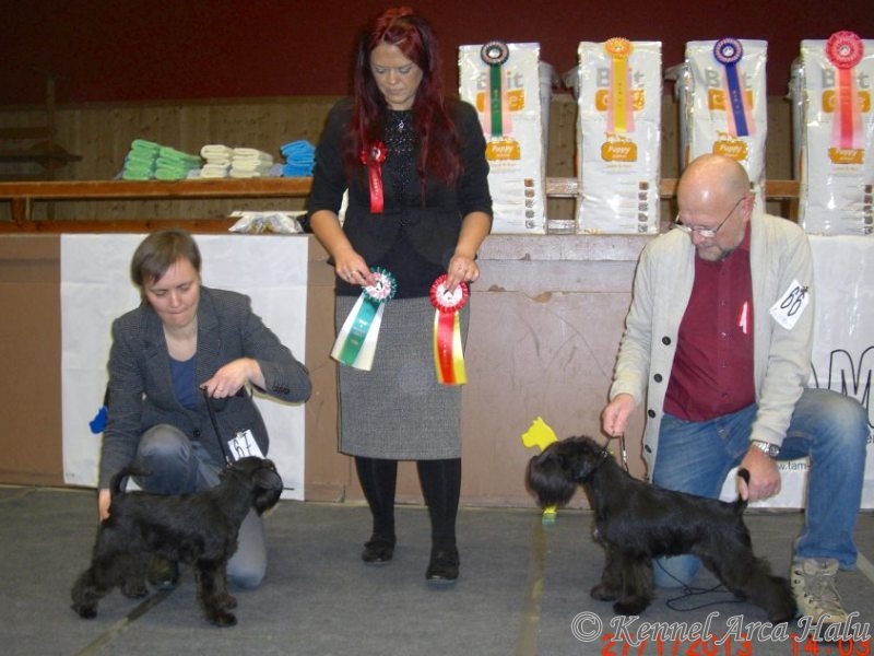 Trondheim Hundefestival 1. september I helga var det Trondheim Hundefestival på Støren Idrettspark. Dommer i dag var Kurt Nilsson fra Sverige og i går var det David Killilea fra Storbritannia. I dag på NSBK sin spesial ble Arca Halu Girl Power (Sasha) BIR og BIS2-valp (Best In Show) og Arca Halu Free Spirit (Simen) ble 2. beste hann med Excellent, CK og Res CERT, Arca Halu Fine Art (Fine) ble 3. beste juniortispe med Excellent. I går ble Arca Halu Free Spirit BIM med CERT og Arca Halu Girl Power BIR-valp