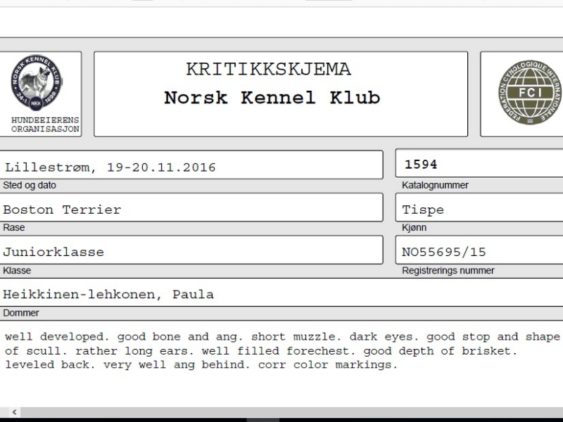 Denne helgen 19. og 20. november var det den største utstillingen i Norge, Norsk Vinner utstilling – Dogs4All på Lillestrøm. Diva debuterte her som "voksen" og stilte i juniorklassen. Det var totalt 7 juniortisper som stilte og av de var det kun 3 som fikk Excellent og 4 fikk Very Good. Diva var blant de tre som fikk Excellent og endte opp som nummer to, plassen bak den som fikk tittelen Norsk Junior Vinner 2016. Og ikke minst så fikk Diva veldig fin kritikk. Så vi er veldig fornøyd med Diva sin debut!