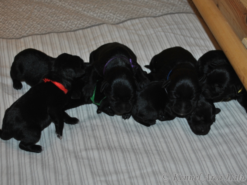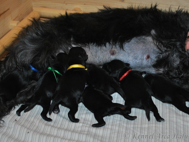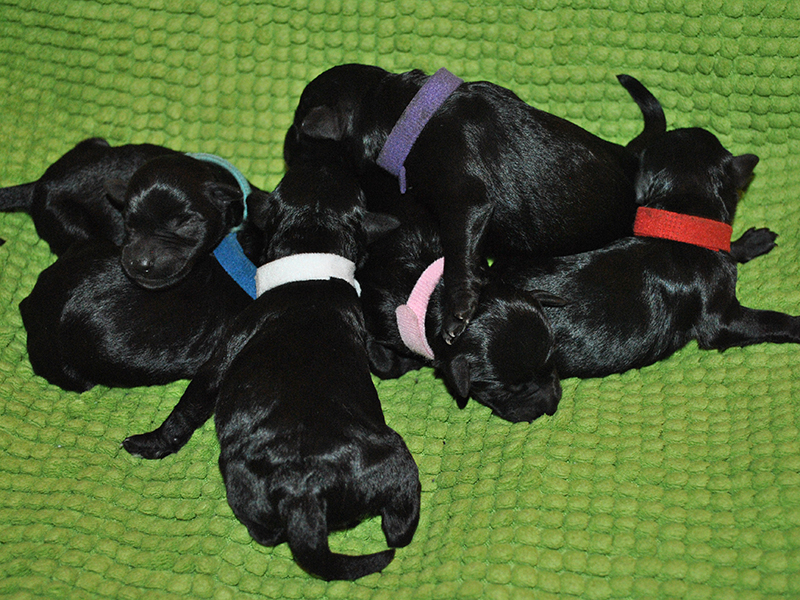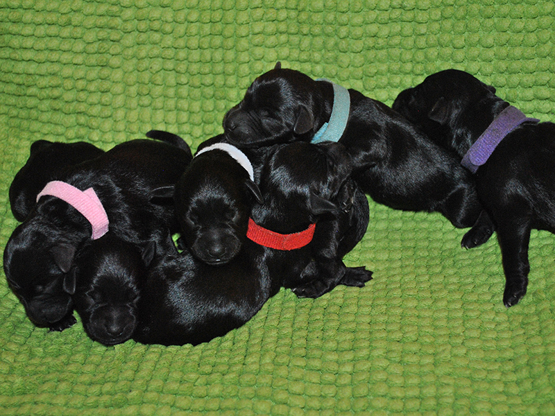 Svarte Dvergschnauzer valper født. Bella fikk 7 flotte valper, 3 tisper og 4 hanner - For mer informasjon se "