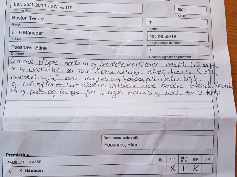 Resultater Boston Terrier: