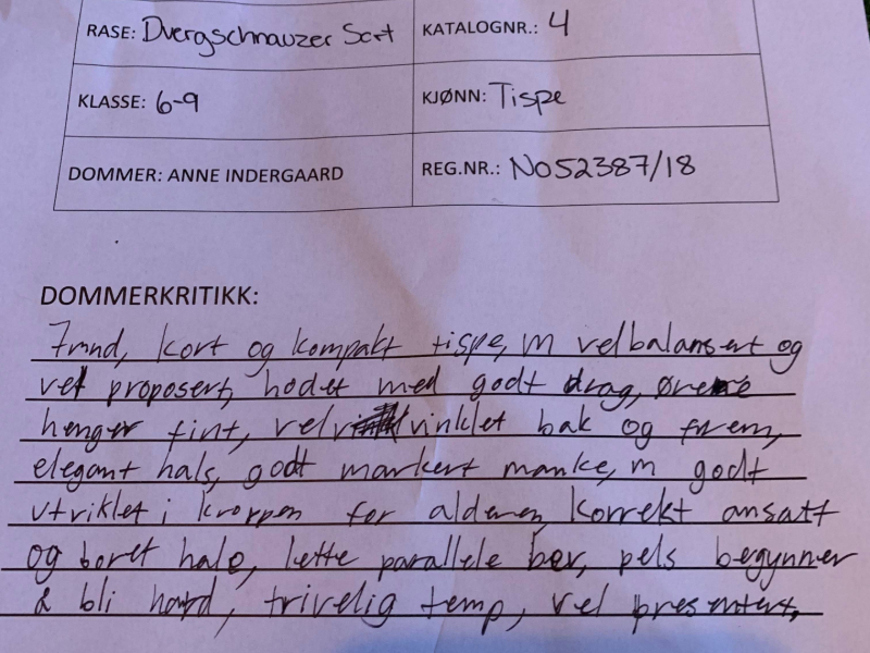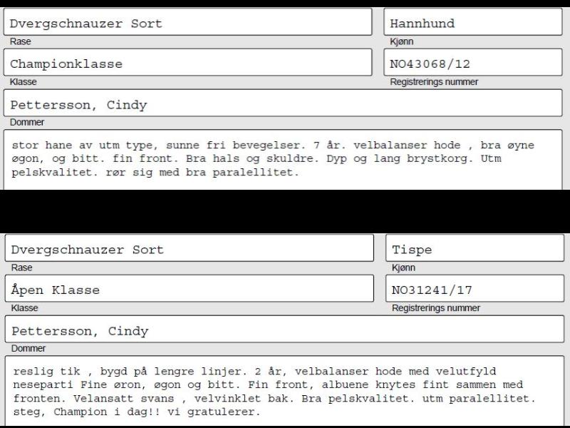 Resultater Dvergschnauzer: