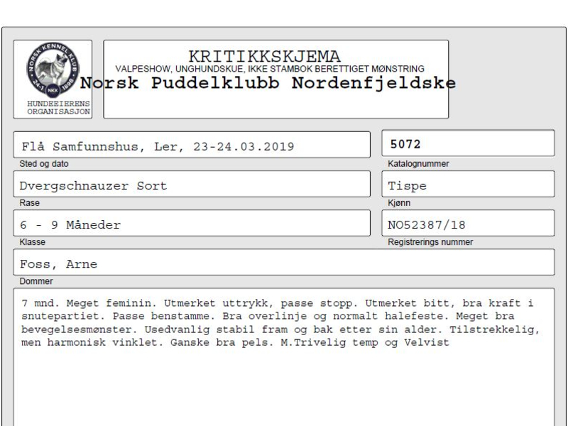 Myra var på valpeshow i dag og det gikk bra med flott kritikk. Arrangør var Norsk Puddelklubb Gruppe Nordenfjeldske.