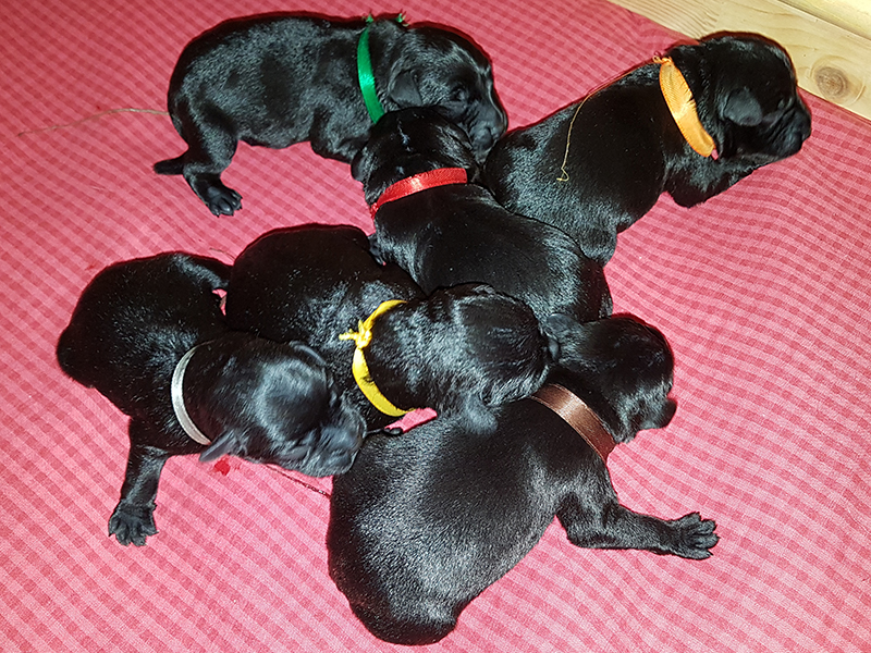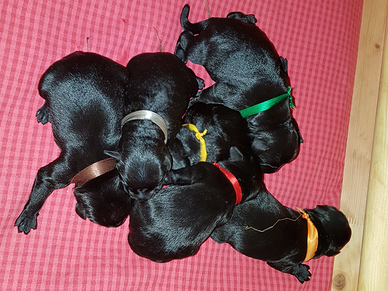 Svarte Dvergschnauzer valper født. Liva fikk 6 flotte valper, 4 tisper og 2 hanner - For mer informasjon se "Valper"